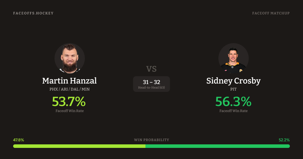 Martin Hanzal vs Sidney Crosby — Faceoff Head-to-Head
