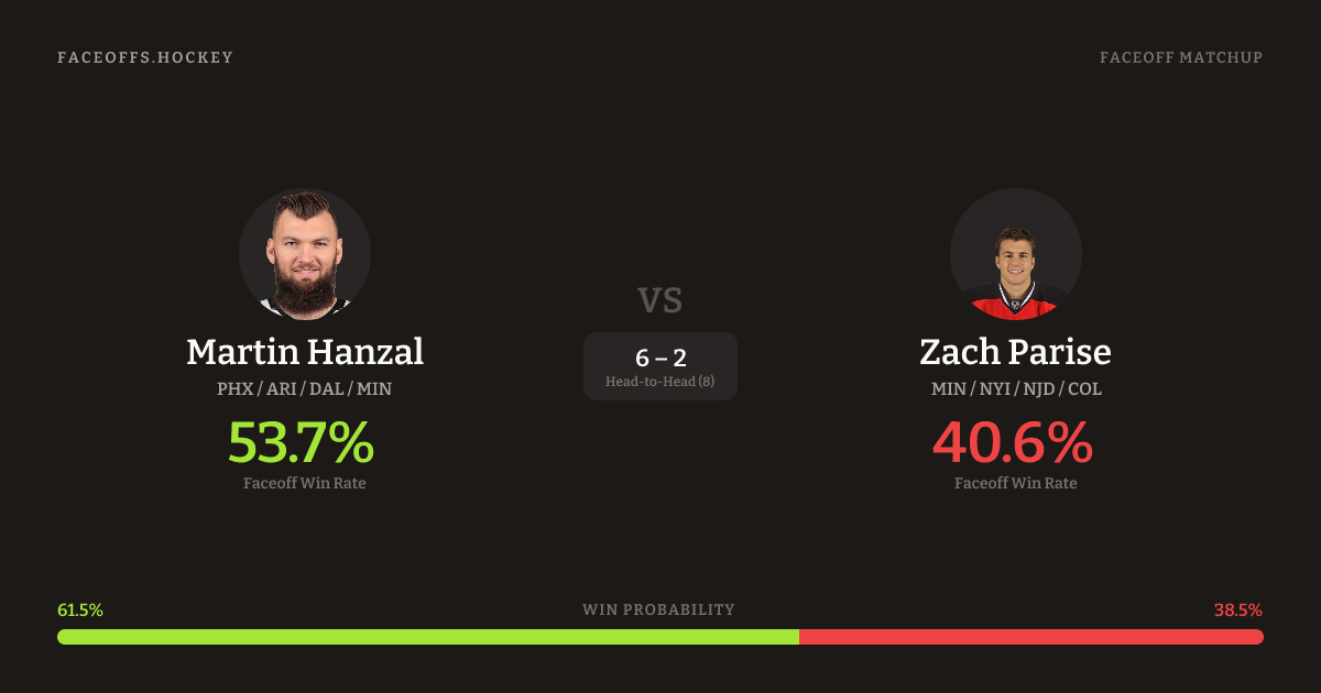 Martin Hanzal vs Zach Parise — Faceoff Head-to-Head