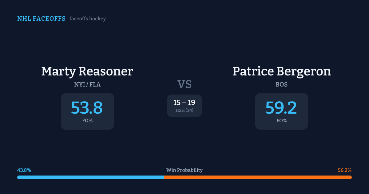 Marty Reasoner vs Patrice Bergeron — Faceoff Head-to-Head