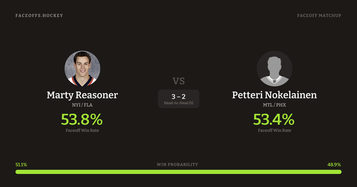 Marty Reasoner vs Petteri Nokelainen — Faceoff Head-to-Head
