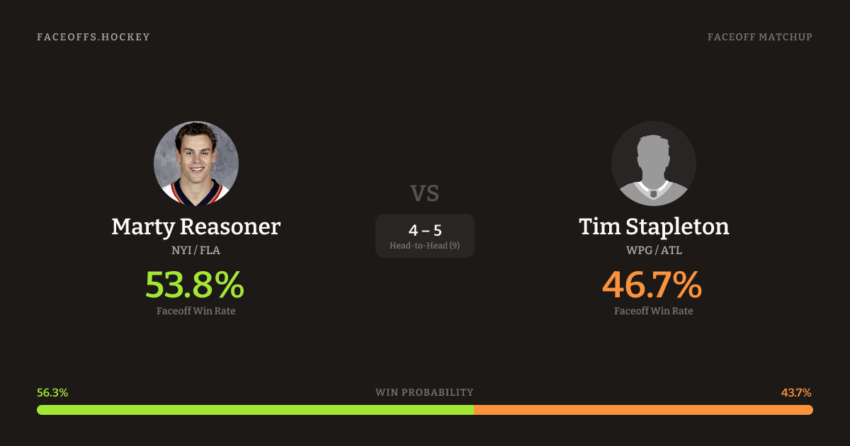 Marty Reasoner vs Tim Stapleton — Faceoff Head-to-Head
