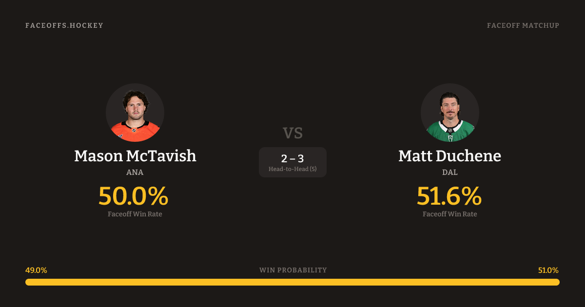 Mason McTavish vs Matt Duchene — Faceoff Head-to-Head