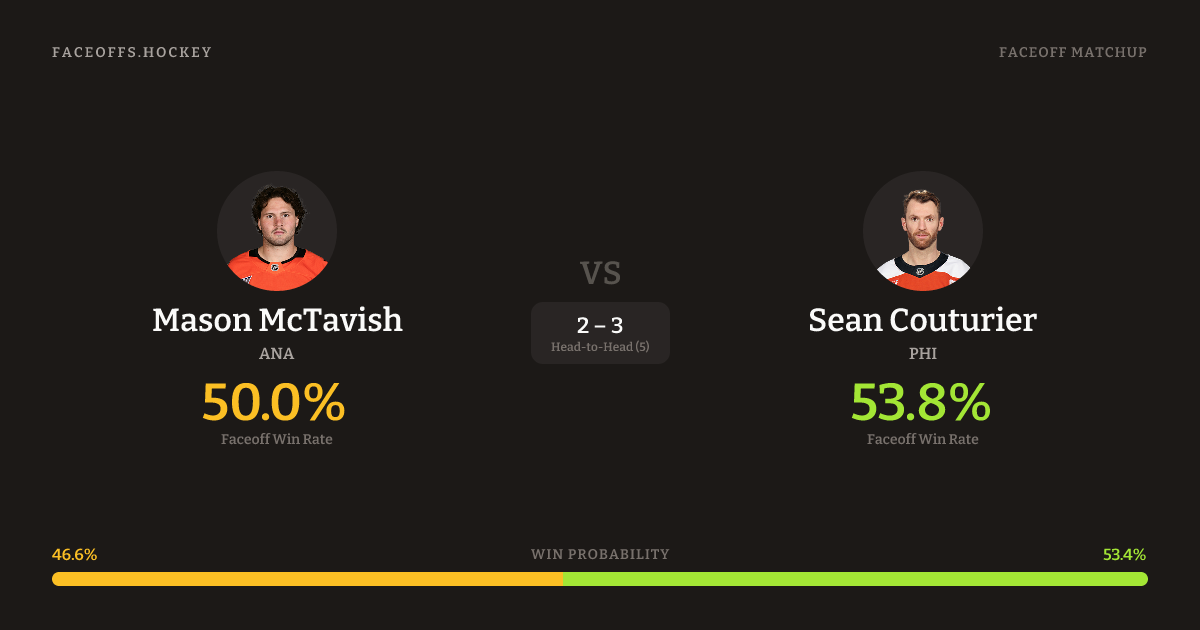 Mason McTavish vs Sean Couturier — Faceoff Head-to-Head