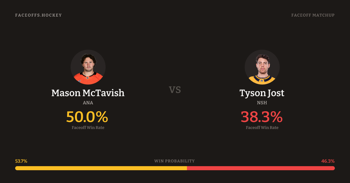 Mason McTavish vs Tyson Jost — Faceoff Head-to-Head