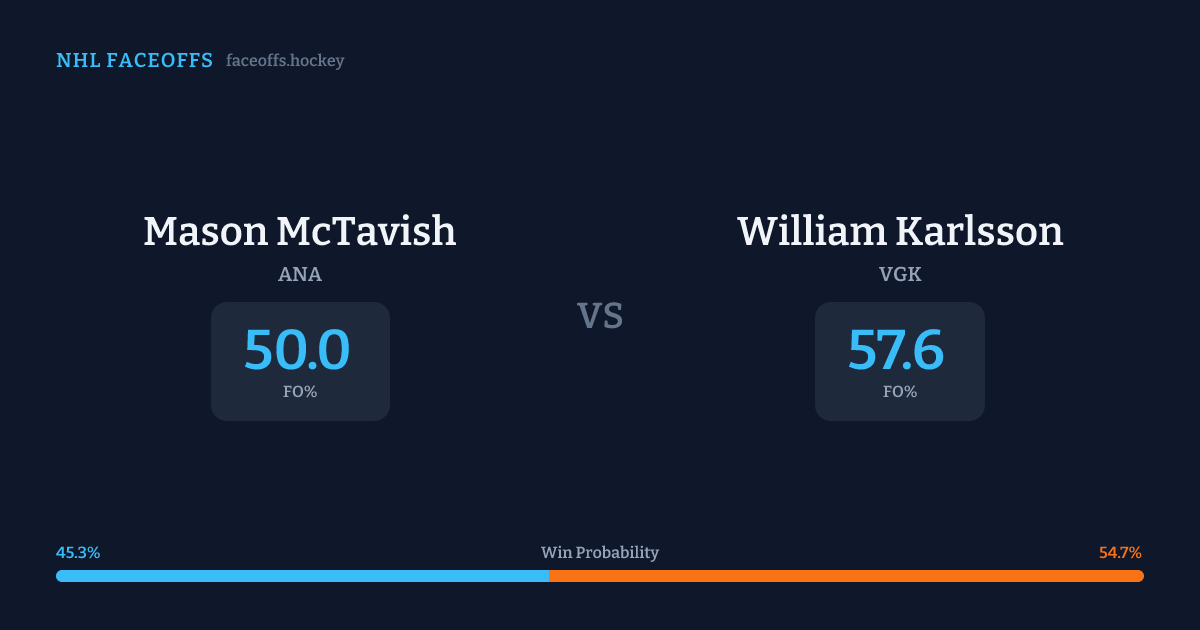 Mason McTavish vs William Karlsson — Faceoff Head-to-Head