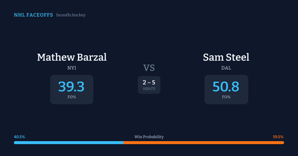 Mathew Barzal vs Sam Steel — Faceoff Head-to-Head