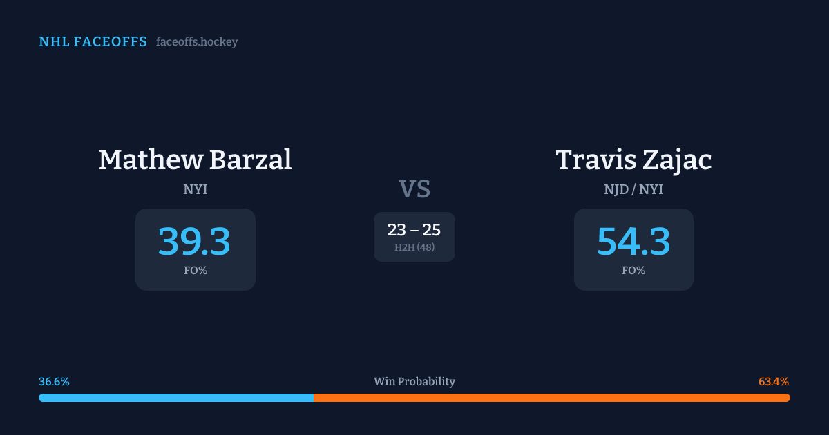 Mathew Barzal vs Travis Zajac — Faceoff Head-to-Head