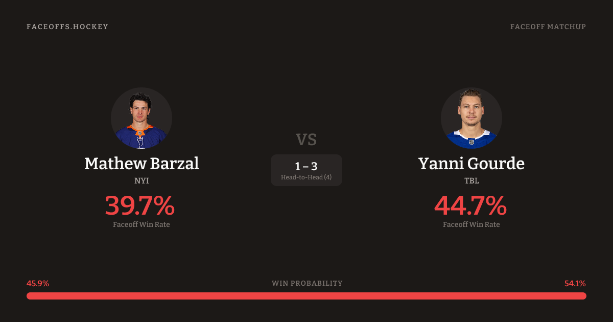 Mathew Barzal vs Yanni Gourde — Faceoff Head-to-Head