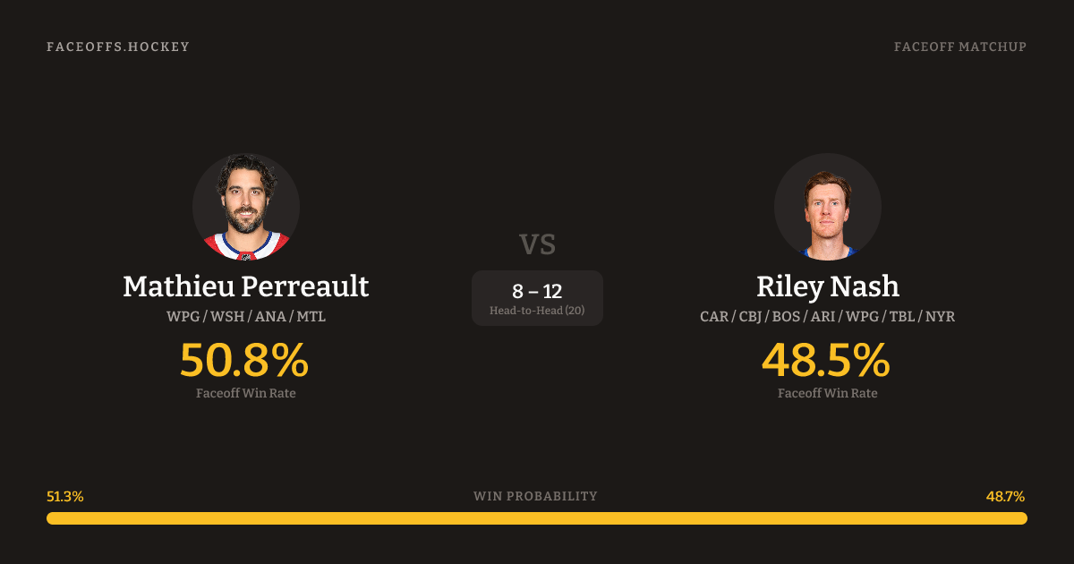 Mathieu Perreault vs Riley Nash — Faceoff Head-to-Head