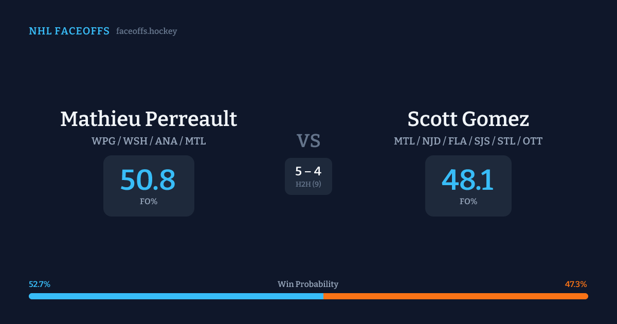 Mathieu Perreault vs Scott Gomez — Faceoff Head-to-Head