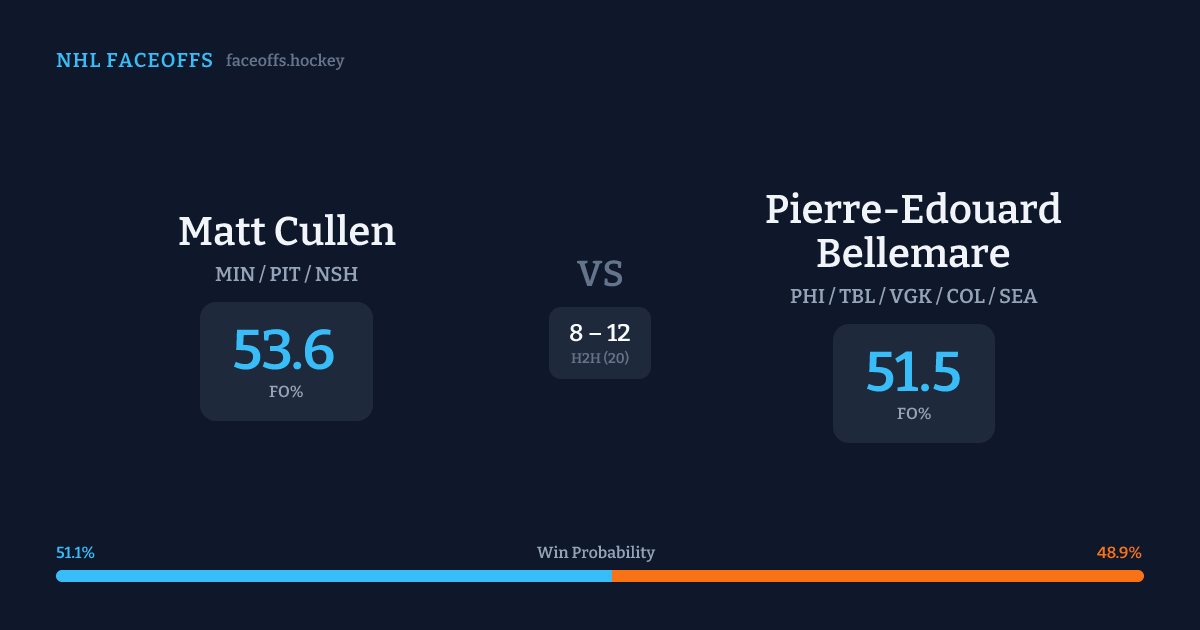 Matt Cullen vs Pierre-Edouard Bellemare — Faceoff Head-to-Head