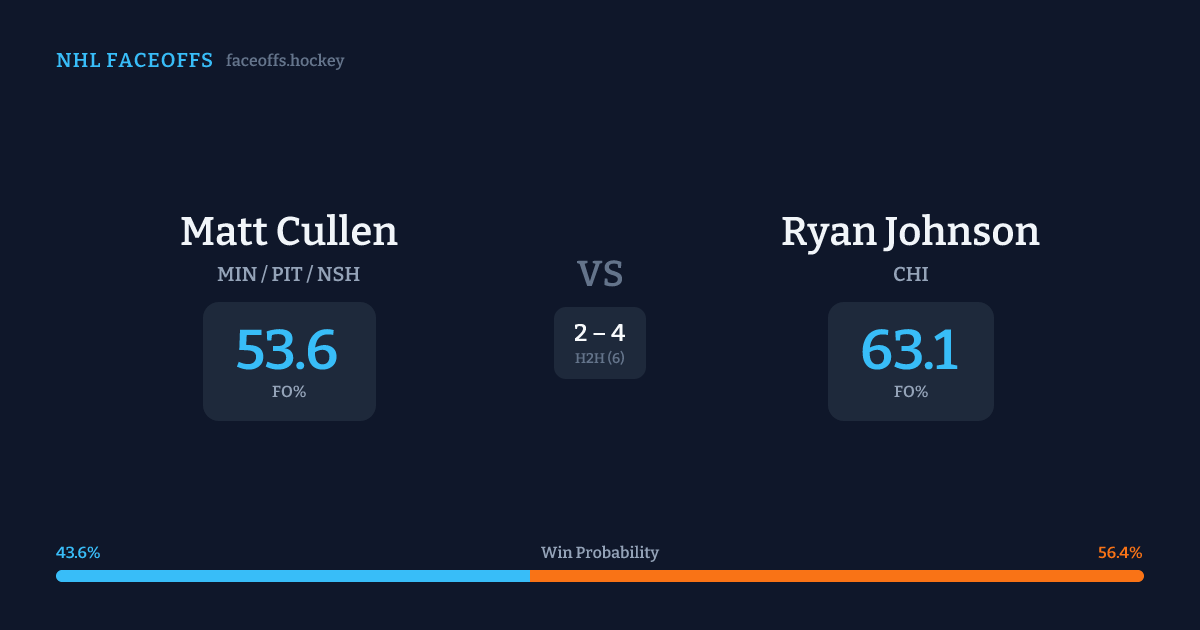 Matt Cullen vs Ryan Johnson — Faceoff Head-to-Head