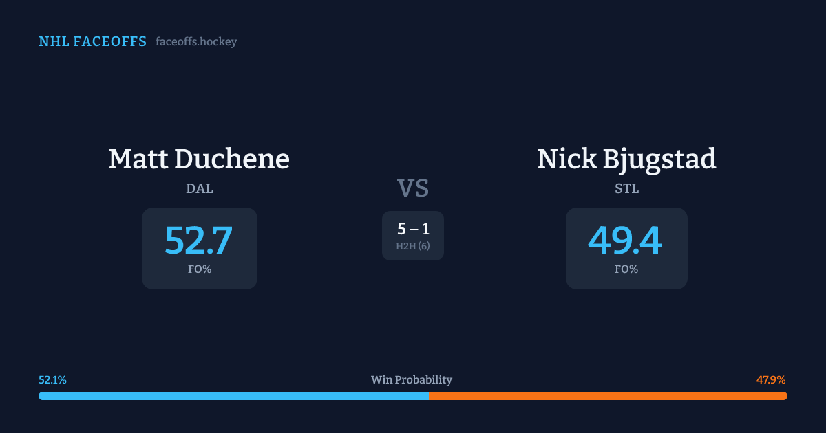 Matt Duchene vs Nick Bjugstad — Faceoff Head-to-Head