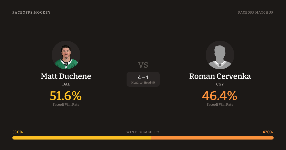Matt Duchene vs Roman Cervenka — Faceoff Head-to-Head