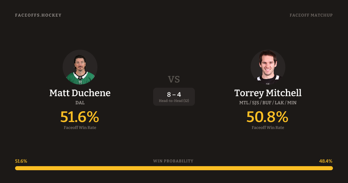 Matt Duchene vs Torrey Mitchell — Faceoff Head-to-Head