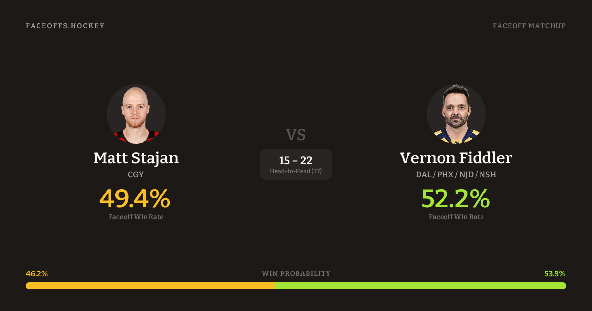 Matt Stajan vs Vernon Fiddler — Faceoff Head-to-Head