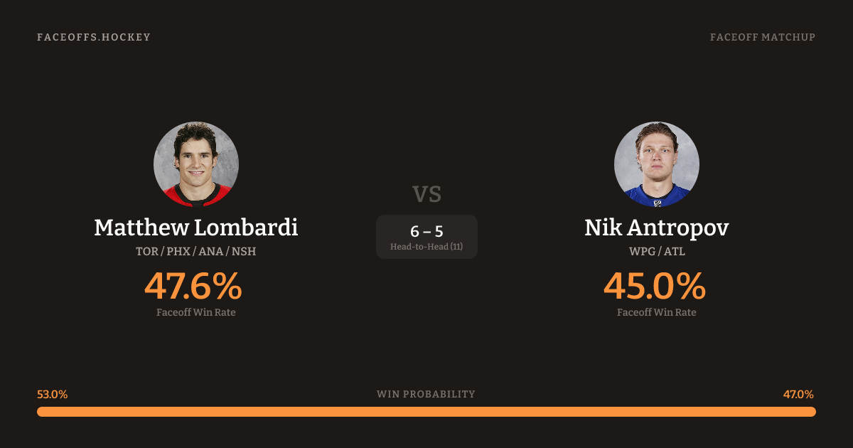 Matthew Lombardi vs Nik Antropov — Faceoff Head-to-Head