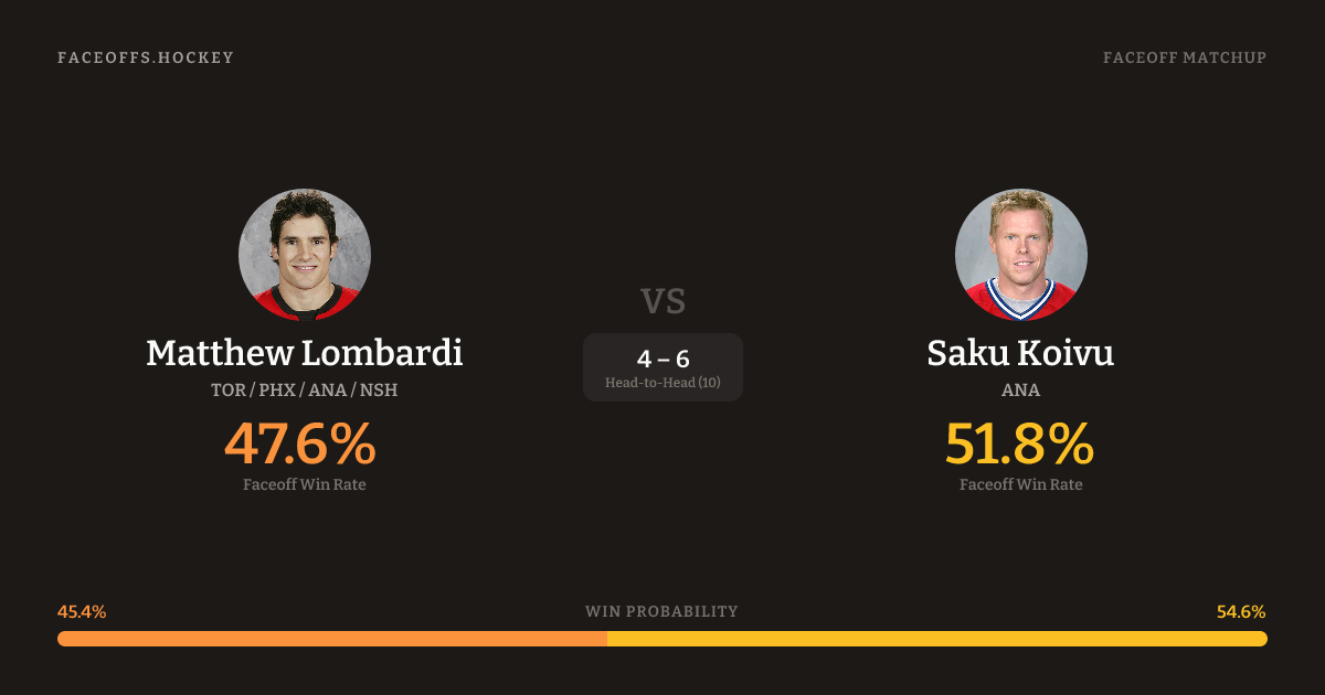 Matthew Lombardi vs Saku Koivu — Faceoff Head-to-Head