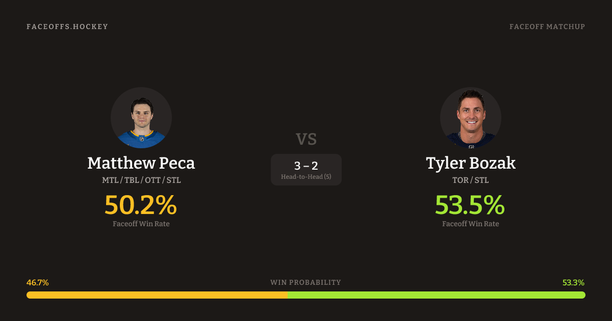 Matthew Peca vs Tyler Bozak — Faceoff Head-to-Head