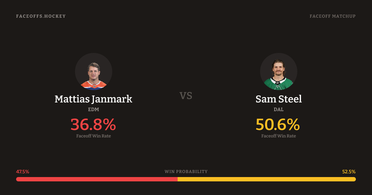 Mattias Janmark vs Sam Steel — Faceoff Head-to-Head