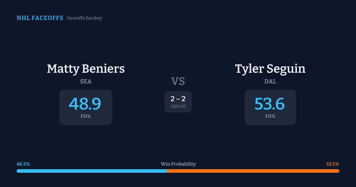 Matty Beniers vs Tyler Seguin — Faceoff Head-to-Head