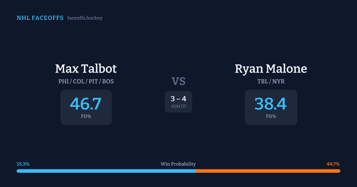 Max Talbot vs Ryan Malone — Faceoff Head-to-Head