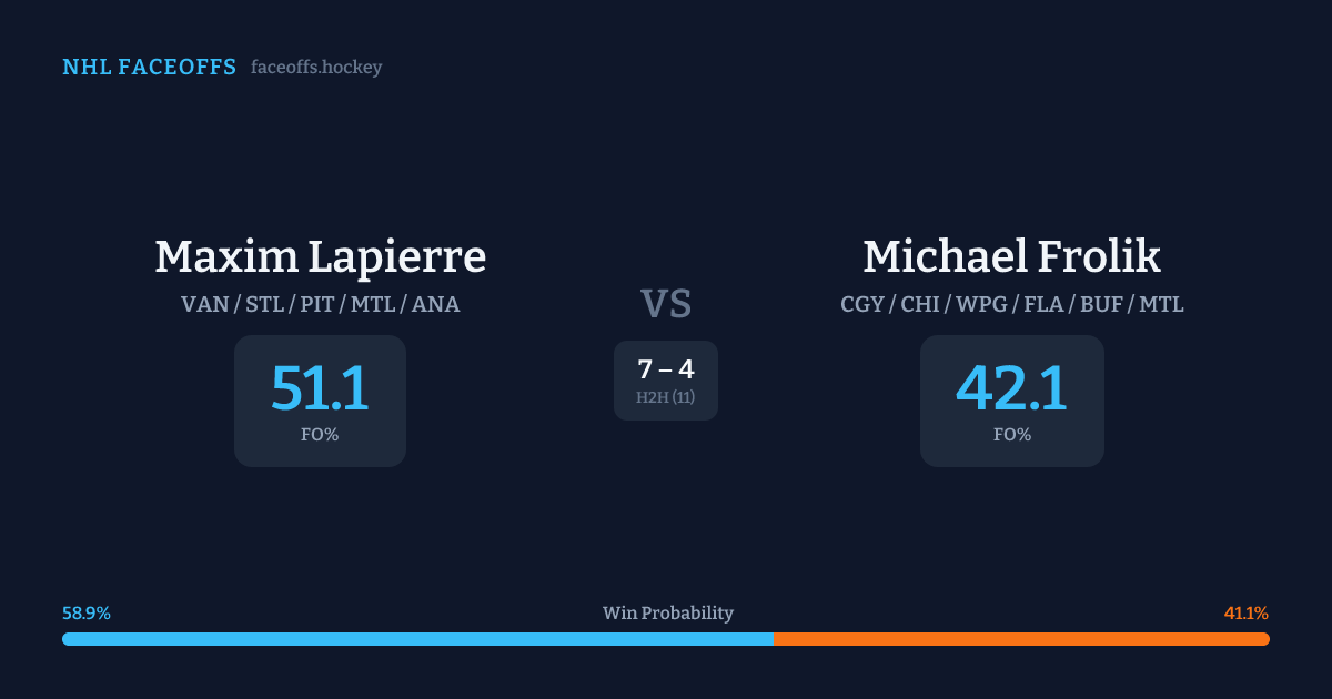 Maxim Lapierre vs Michael Frolik — Faceoff Head-to-Head