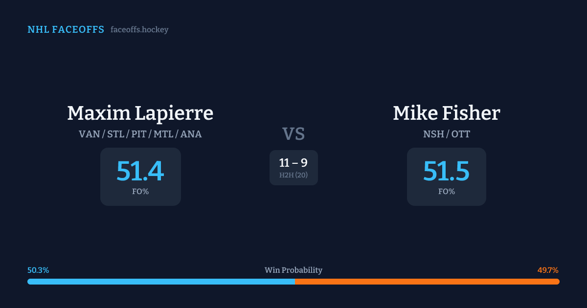 Maxim Lapierre vs Mike Fisher — Faceoff Head-to-Head