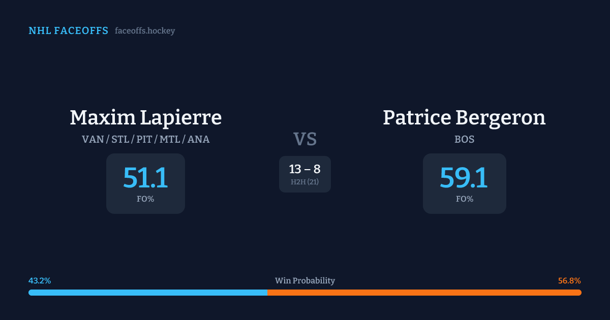 Maxim Lapierre vs Patrice Bergeron — Faceoff Head-to-Head