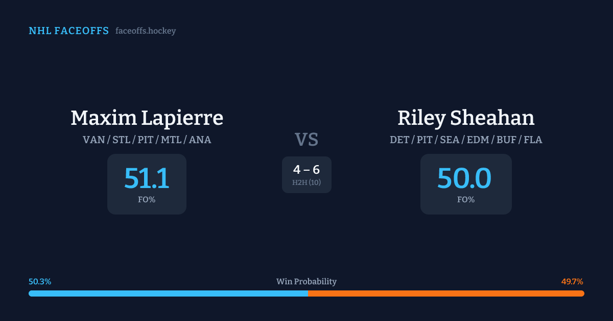 Maxim Lapierre vs Riley Sheahan — Faceoff Head-to-Head