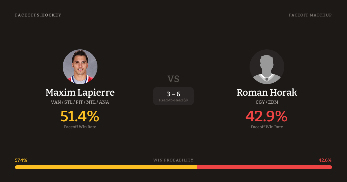 Maxim Lapierre vs Roman Horak — Faceoff Head-to-Head