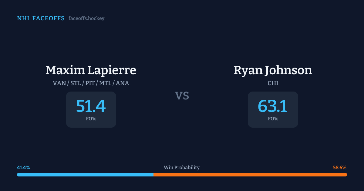 Maxim Lapierre vs Ryan Johnson — Faceoff Head-to-Head