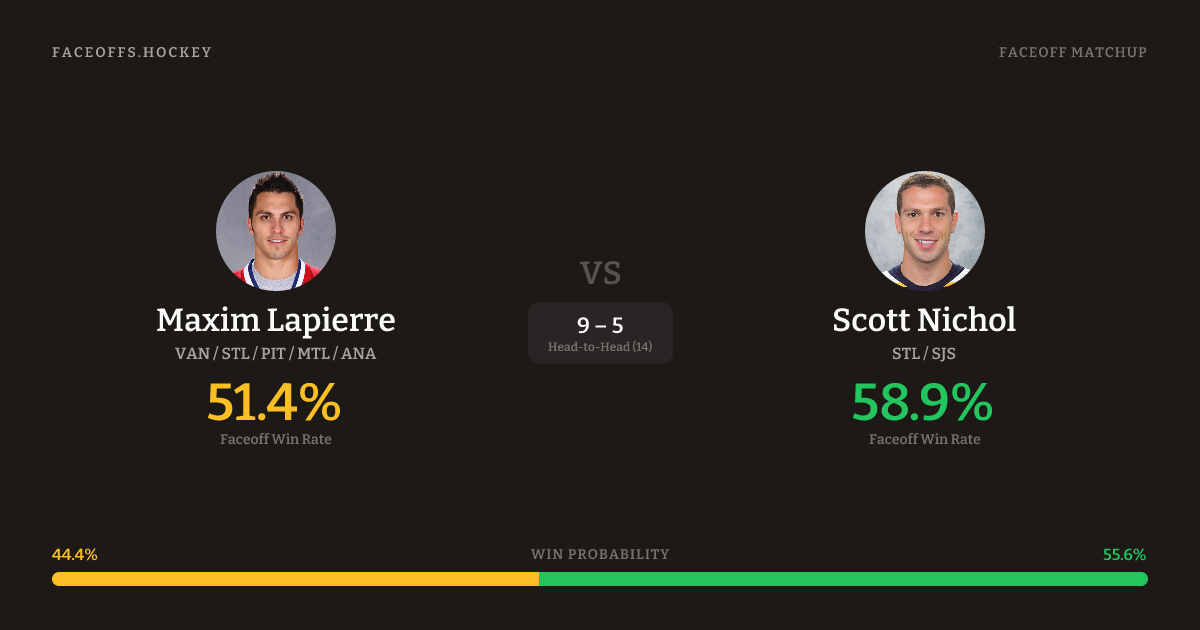 Maxim Lapierre vs Scott Nichol — Faceoff Head-to-Head