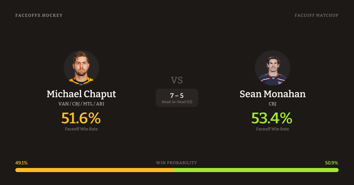 Michael Chaput vs Sean Monahan — Faceoff Head-to-Head