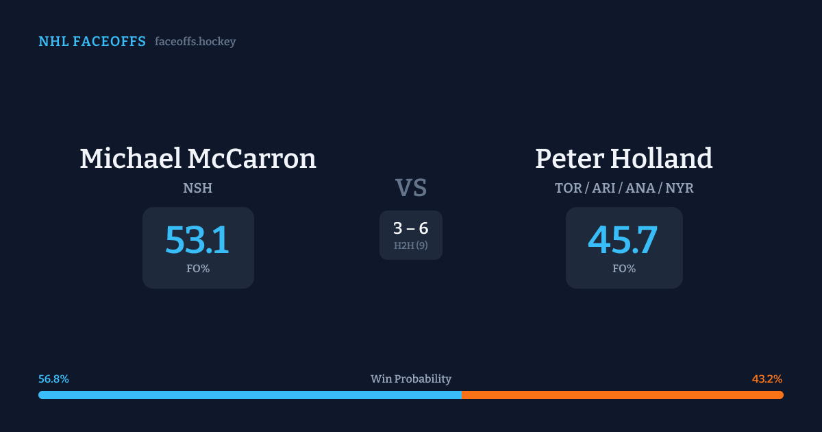 Michael McCarron vs Peter Holland — Faceoff Head-to-Head