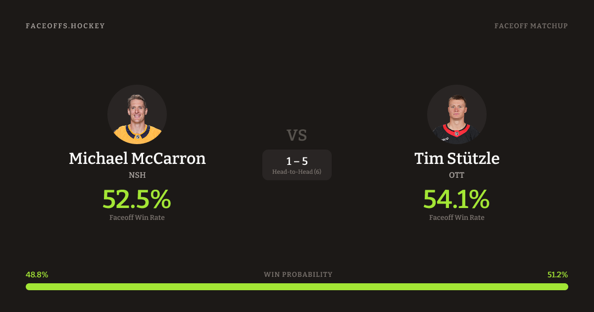 Michael McCarron vs Tim Stützle — Faceoff Head-to-Head