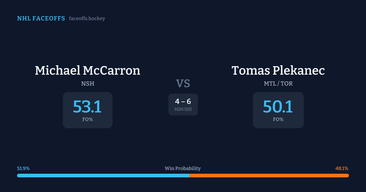 Michael McCarron vs Tomas Plekanec — Faceoff Head-to-Head
