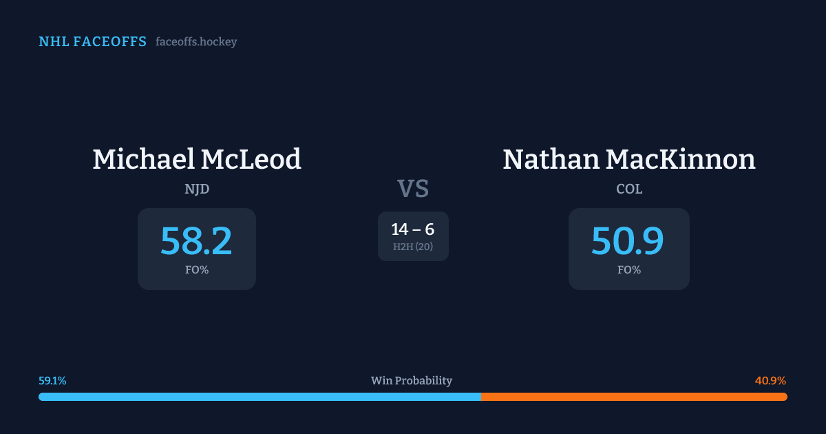 Michael McLeod vs Nathan MacKinnon — Faceoff Head-to-Head