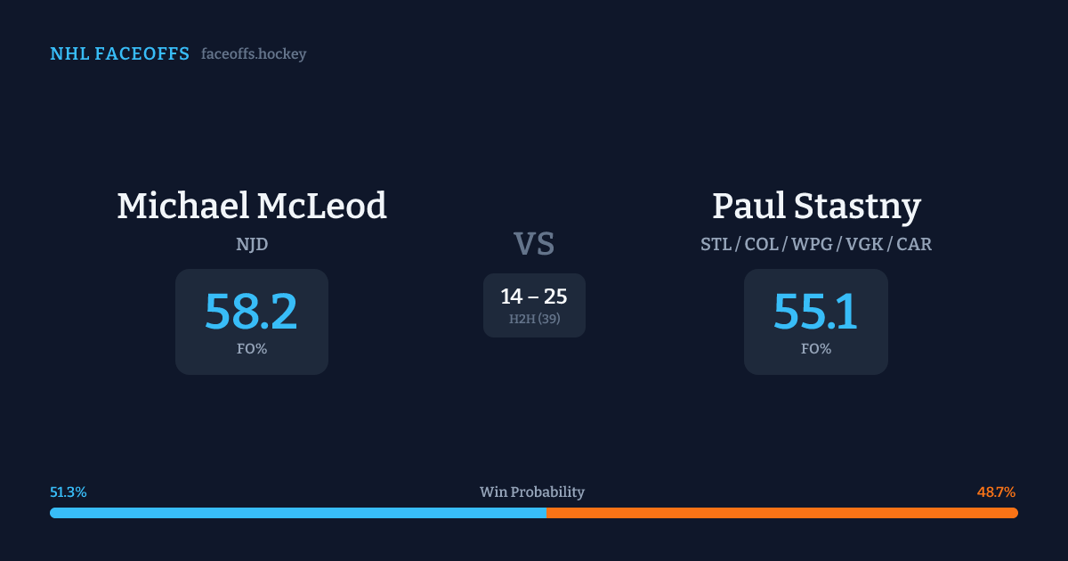 Michael McLeod vs Paul Stastny — Faceoff Head-to-Head