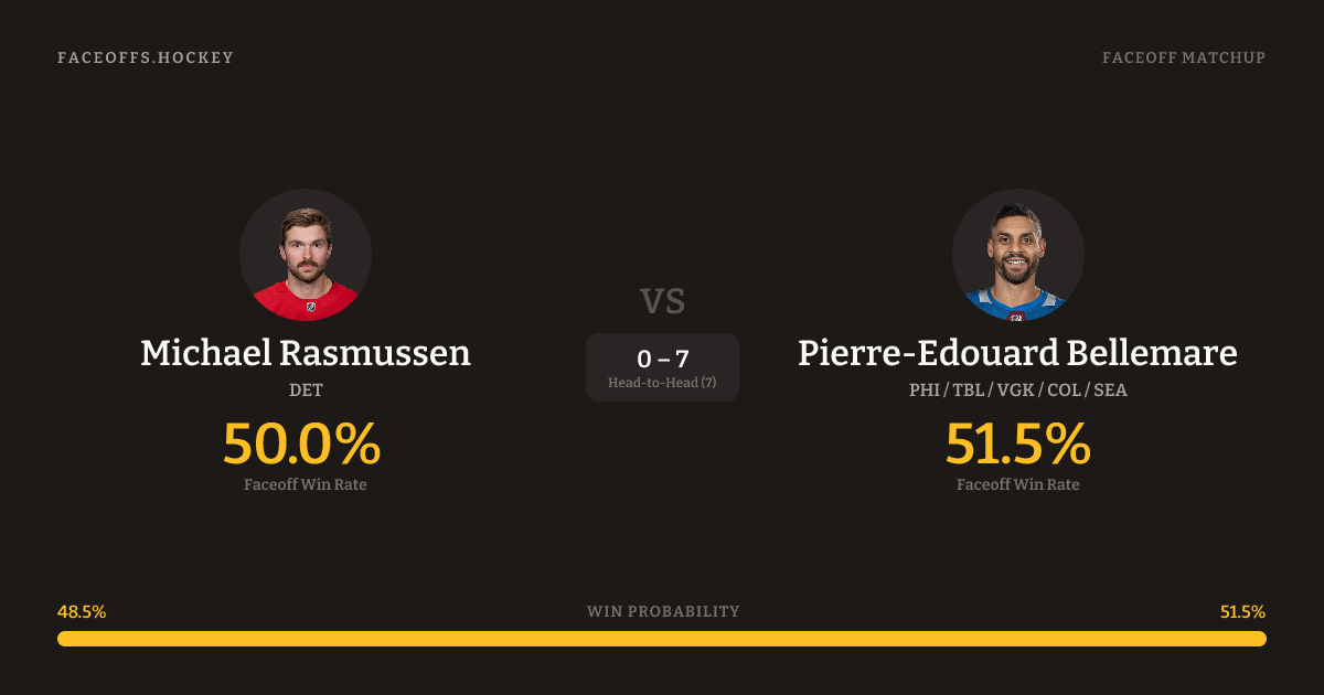 Michael Rasmussen vs Pierre-Edouard Bellemare — Faceoff Head-to-Head