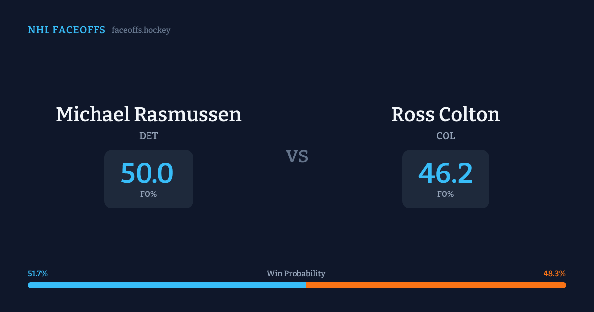 Michael Rasmussen vs Ross Colton — Faceoff Head-to-Head