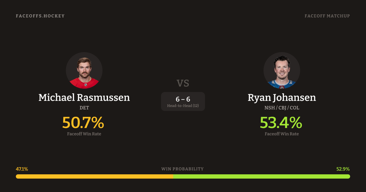 Michael Rasmussen vs Ryan Johansen — Faceoff Head-to-Head