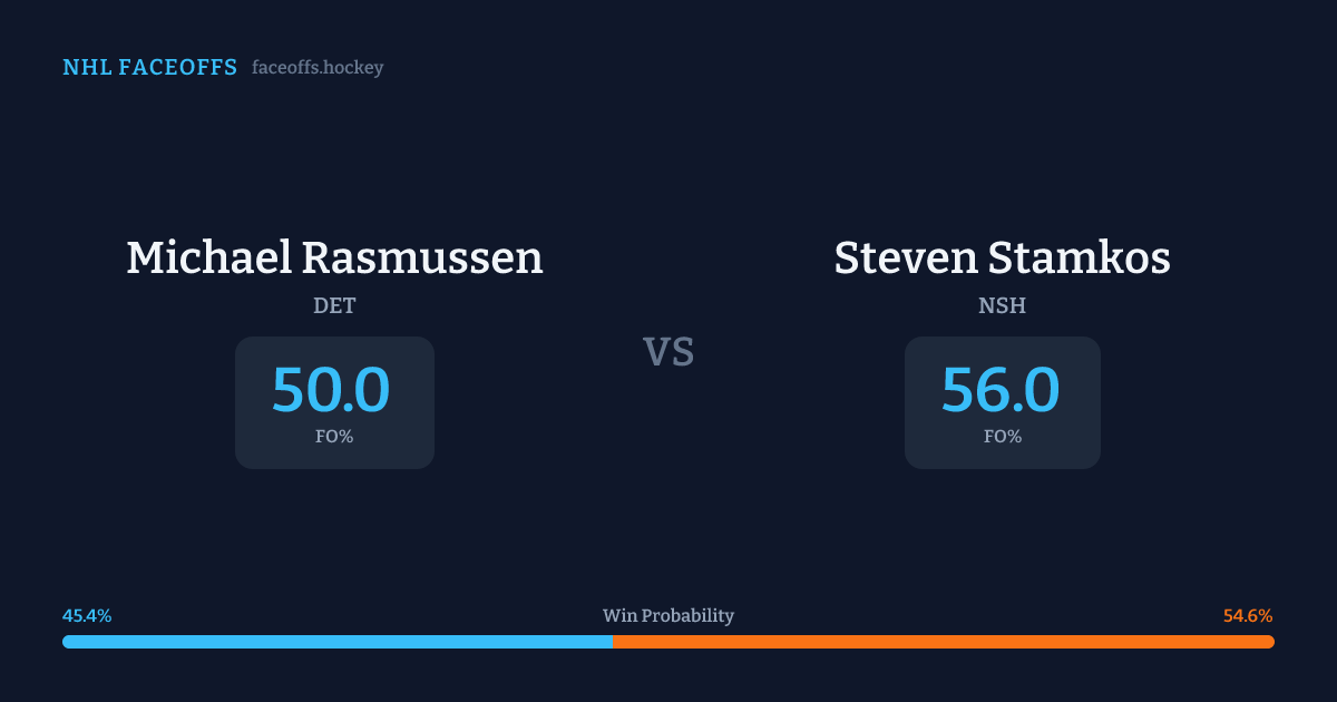 Michael Rasmussen vs Steven Stamkos — Faceoff Head-to-Head