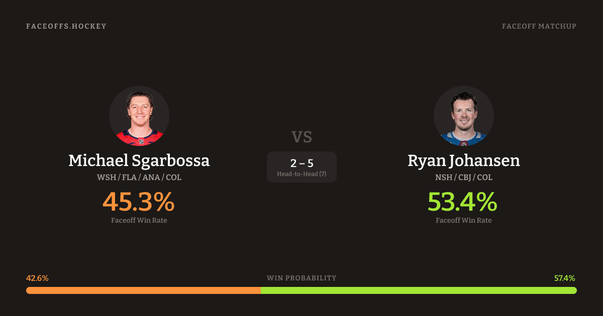 Michael Sgarbossa vs Ryan Johansen — Faceoff Head-to-Head