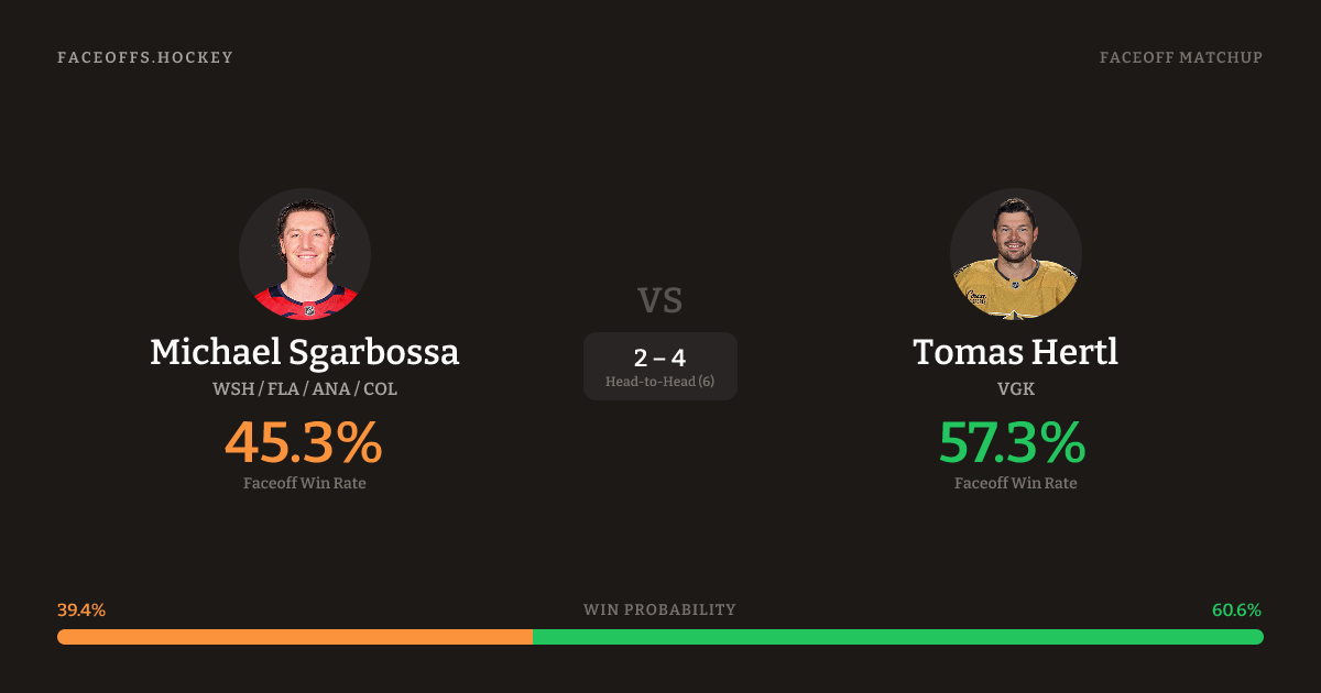 Sgarbossa 45.4% vs Hertl 51.4% (-7.8%)