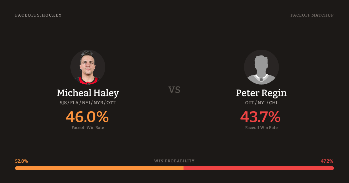 Micheal Haley vs Peter Regin — Faceoff Head-to-Head