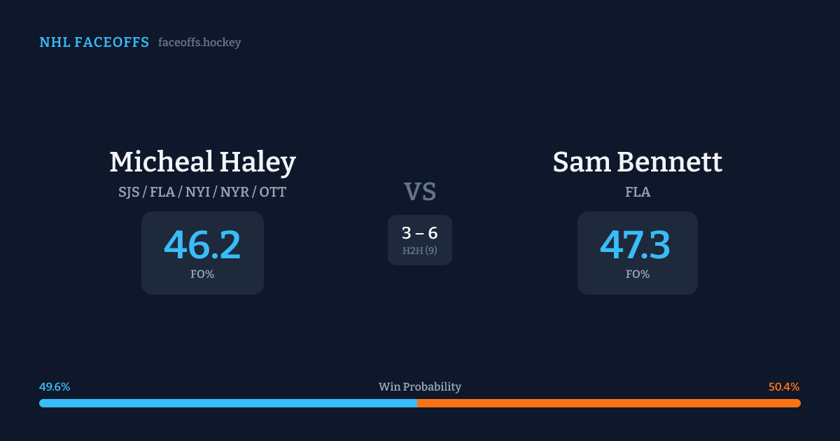 Micheal Haley vs Sam Bennett — Faceoff Head-to-Head