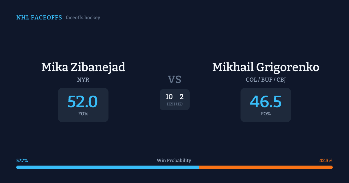Mika Zibanejad vs Mikhail Grigorenko — Faceoff Head-to-Head