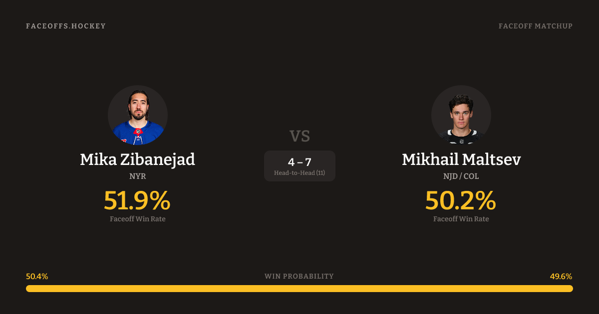 Mika Zibanejad vs Mikhail Maltsev — Faceoff Head-to-Head