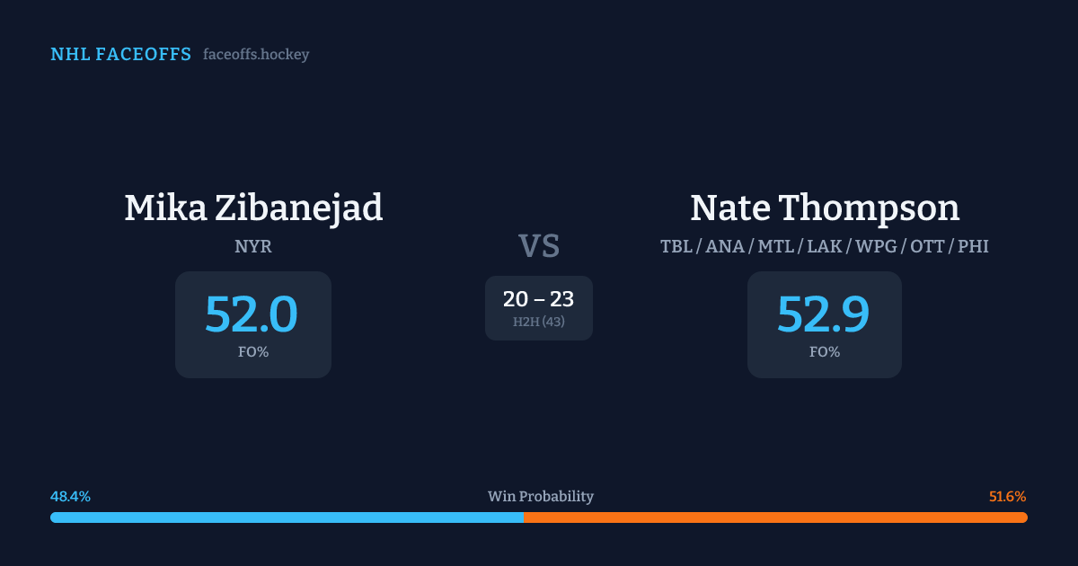 Mika Zibanejad vs Nate Thompson — Faceoff Head-to-Head